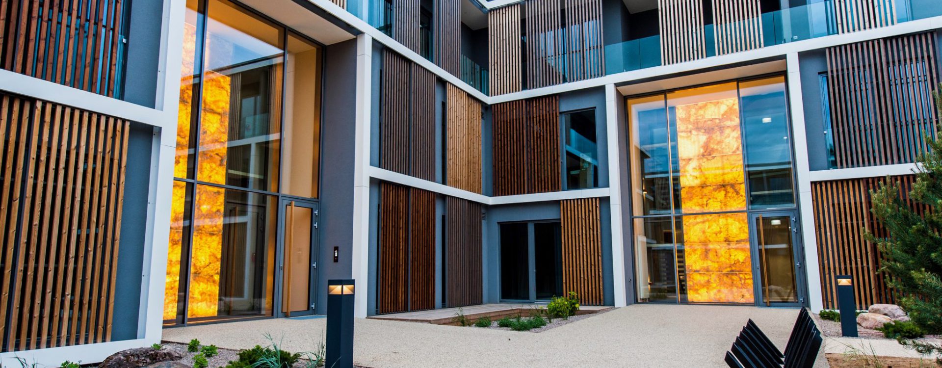 Дизайн входных групп свидетельствует об эксклюзивности жилого комплекса Haven Kakumäe. Вход в каждый подъезд украшен камнем из оникса с подсветкой. Яркий теплый свет заряжает энергией и позитивными эмоциями. Просторный и минималистичный интерьер подъездов создает ощущение спокойствия и гармонии.